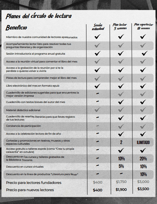 «El círculo de lectura es una de mis mejores inversiones de tiempo. Cada lectura es una maravillosa y enriquecedora experiencia. Me ha disciplinado a concluir un libro por mes. He leído libros que por mí misma no elegiría. He aprendido mucho de mí misma. ¡Cada año es un reto y un aprendizaje con motivación extra! ¡¡¡El mejor club de lectura!!!»