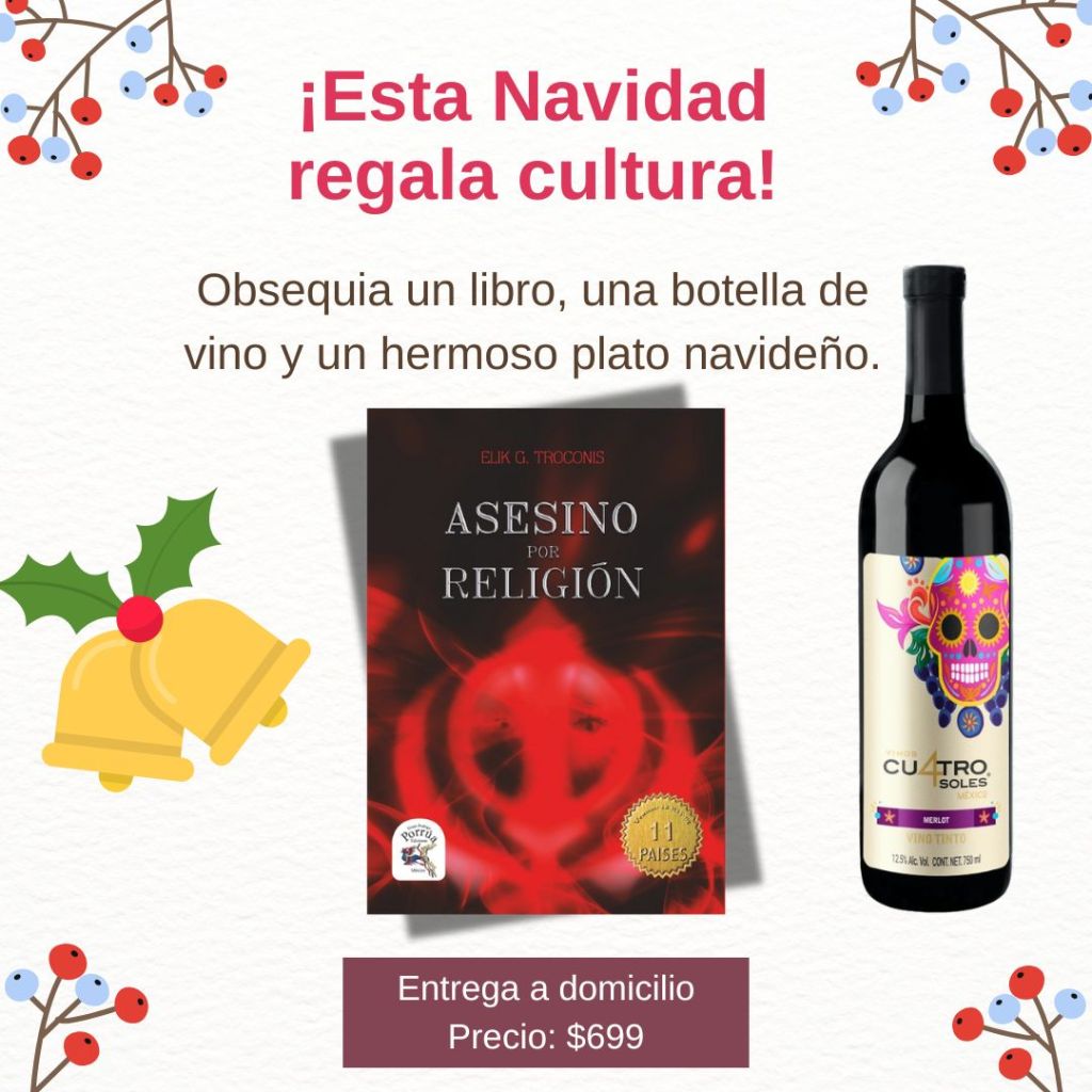 Este arreglo está compuesto por tres elementos cuidadosamente seleccionados para crear una experiencia completa. Primero, el regalo de la cultura y la intriga: mi novela, Asesino por religión. No estás regalando solo un objeto, sino la promesa de una historia que capturará al lector desde la primera página.